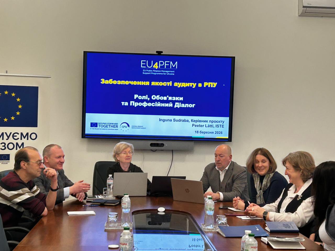 The discussion was guided by a presentation delivered by Inguna Sudraba, Team Leader of EU4PFM Component 5, and Peeter Lätti, Institutional Development, Management and Auditing Expert of EU4PFM, who shared practical findings on strengthening audit quality systems and professional practice.